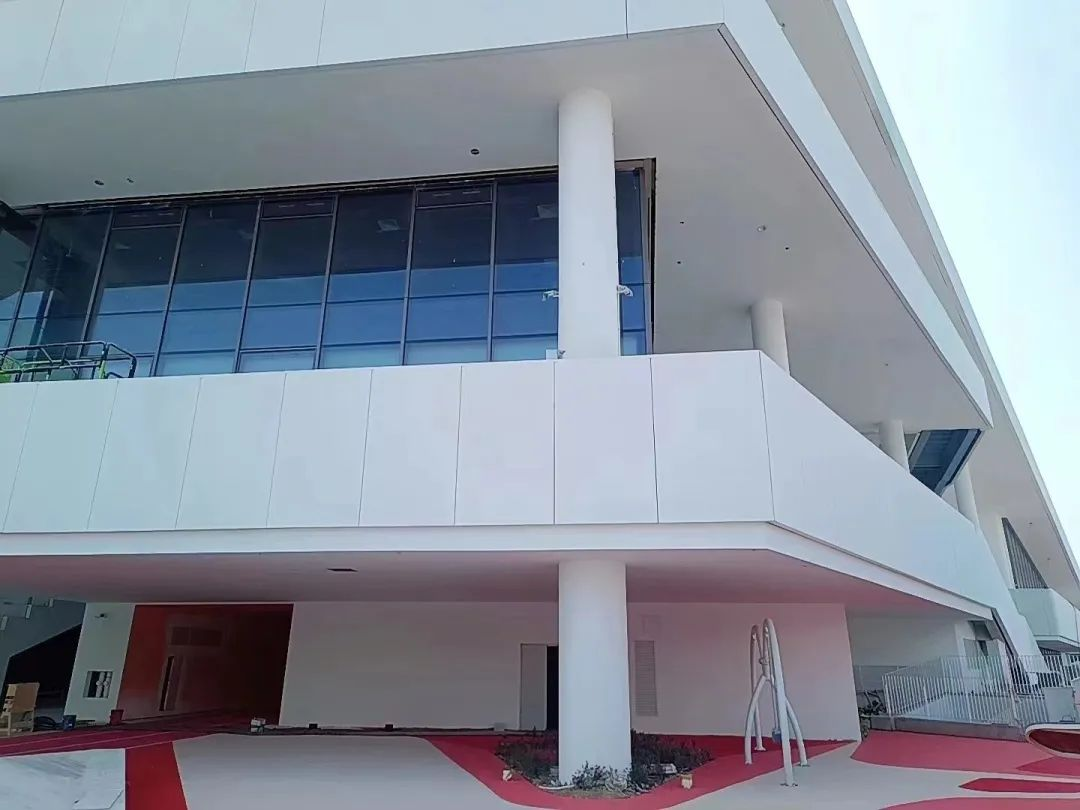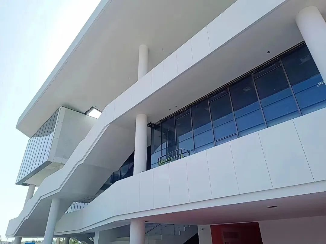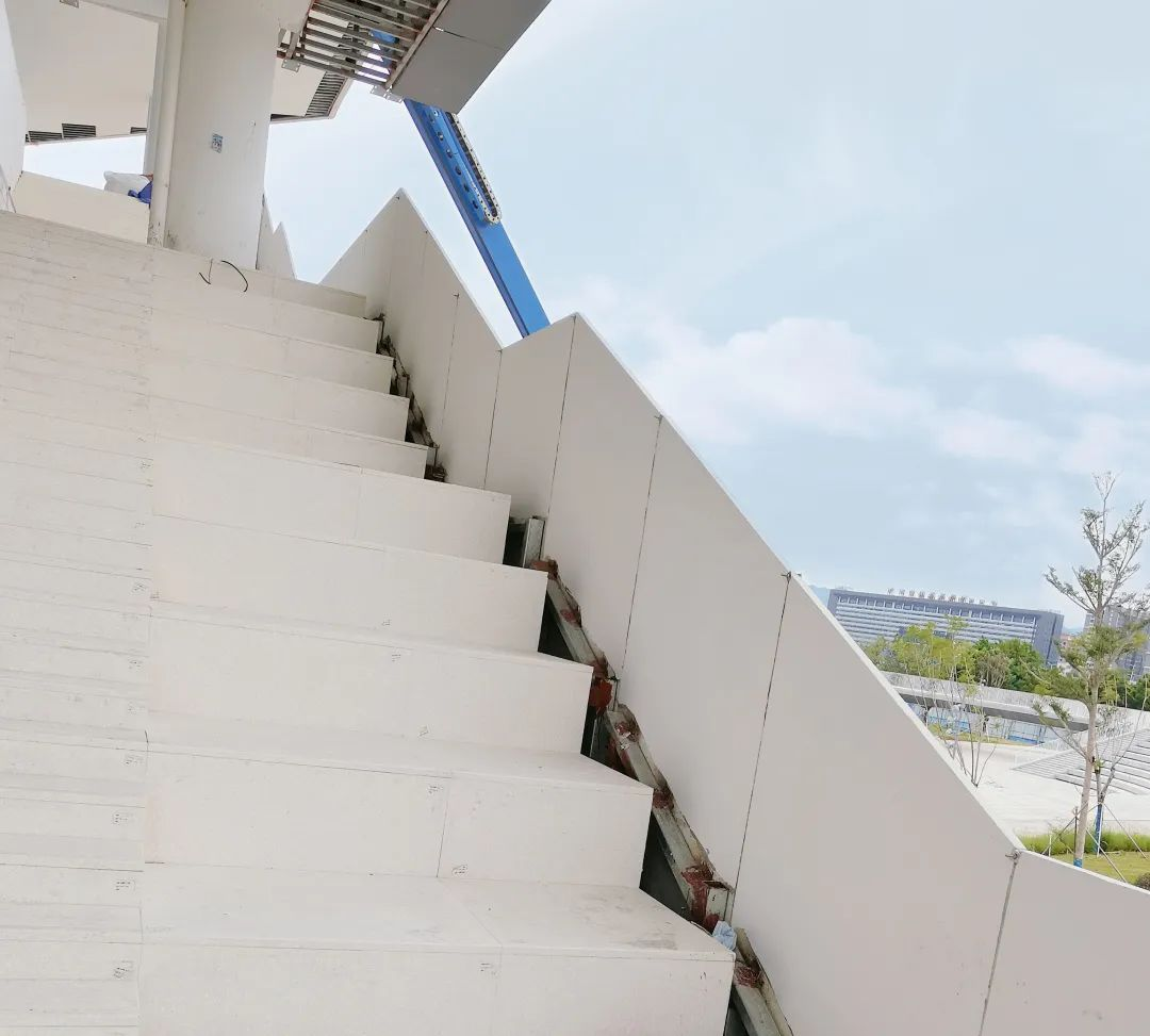 屋面檐口及走道護(hù)欄裝飾采用砼創(chuàng)生產(chǎn)的UHPC超高性能混凝土掛板,純白色清水面的UHPC板簡(jiǎn)約并不簡(jiǎn)單。