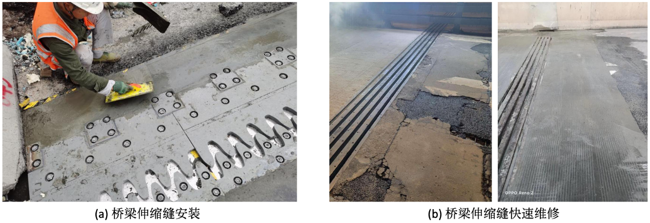 廣州朋悅建材研發(fā)的快硬UHPC預(yù)混料,除了用于橋梁伸縮縫快速維修,也用于混凝土橋面、路面和地坪的快速修補(bǔ)或罩面,最薄鋪裝厚度可低至5mm,降低了維修的材料消耗。