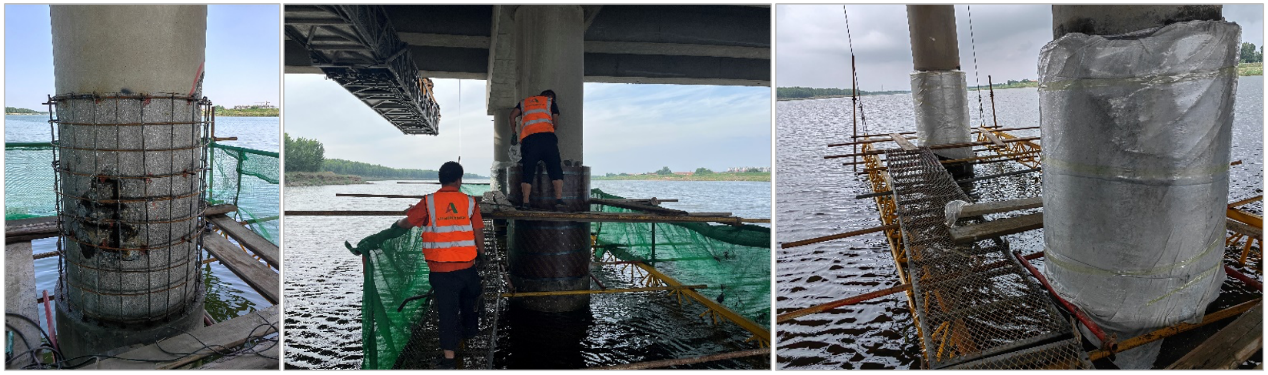 圖33:五龍河大橋橋墩維修保護(hù)(山東高速工程檢測(cè)公司提供照片)