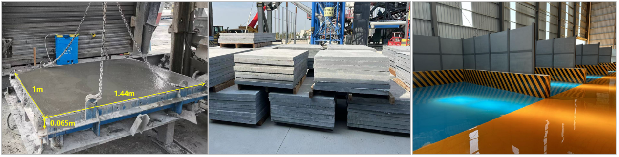 圖34:臨建場(chǎng)站料倉(cāng)隔墻用UHPC隔倉(cāng)板(保利長(zhǎng)大四公司提供照片)