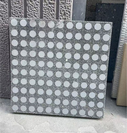 原理:將圖片處理后使用印刷設(shè)備印刷到 防水紙或膜上,其中印刷油墨中包含特殊的水泥緩凝劑,制成緩凝成像膜。再使用緩凝成像膜制作混凝土板,使得混凝土板上圖案區(qū)域骨料露出,與無(wú)圖案部分的水泥基色形成對(duì)比,產(chǎn)生圖案效果。圖案由圖案部分露出的骨料與無(wú)圖案部分正常水泥石的顏色色差對(duì)比形成。緩凝成像技術(shù)制成的圖像混凝土,圖案從任意角度觀察都清晰可見(jiàn)。
